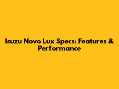 Isuzu Novo Lux Specs: Features & Performance