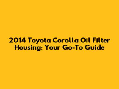 Common Problems with the 2014 Corolla Oil Filter Housing