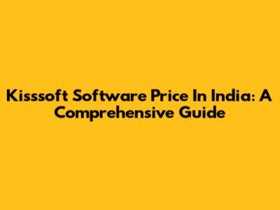 Kisssoft Software Price In India: A Comprehensive Guide