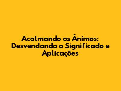 Acalmando Os Ânimos: Desvendando O Significado E Aplicações
