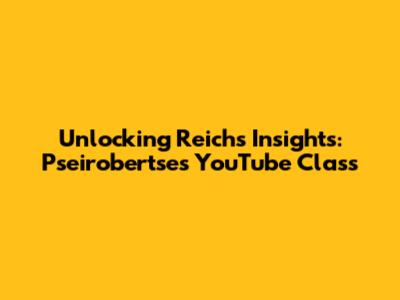 Unlocking Reich's Insights: Pseirobertse's YouTube Class