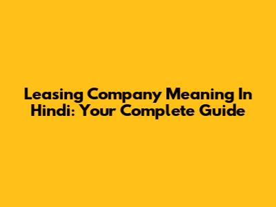 Leasing Company Meaning In Hindi: Your Complete Guide