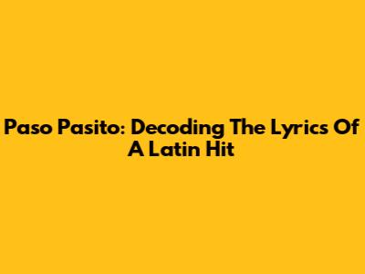 Paso Pasito: Decoding The Lyrics Of A Latin Hit