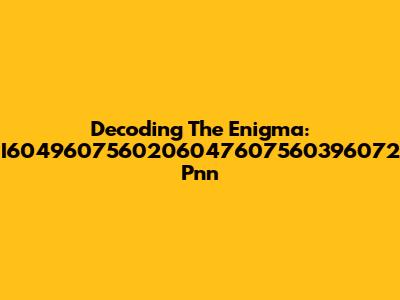 Decoding The Enigma: I6049607560206047607560396072 Pnn