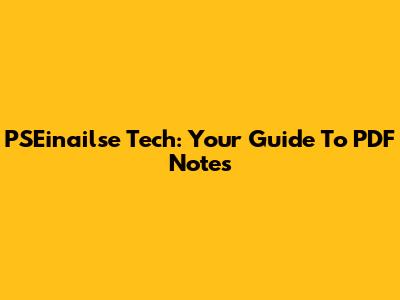 PSEinailse Tech: Your Guide To PDF Notes