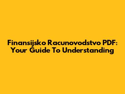 Finansijsko Racunovodstvo PDF: Your Guide To Understanding