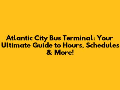 - What are the typical operating hours of the Atlantic City Bus Terminal? Generally, the terminal operates from early morning until late at night. However, it's crucial to confirm the specific hours with the bus companies or by contacting the terminal directly, as hours can vary. Check for Atlantic City Bus Terminal hours regularly. *