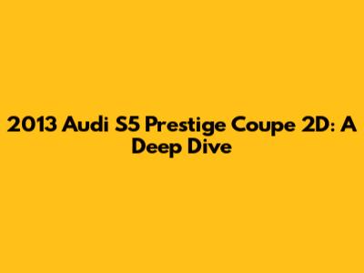 Hey guys! Today, we're diving deep into the 2013 Audi S5 Prestige Coupe 2D. This car isn't just a ride; it's a statement. We're talking about a blend of luxury, performance, and style that makes it a standout in its class. If you're considering getting one or just curious, buckle up! We'll cover everything from its performance and interior to its tech and overall driving experience. Let's get started!