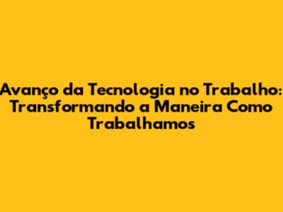 Avanço Da Tecnologia No Trabalho