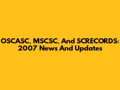 OSCASC, MSCSC, And SCRECORDS: 2007 News And Updates