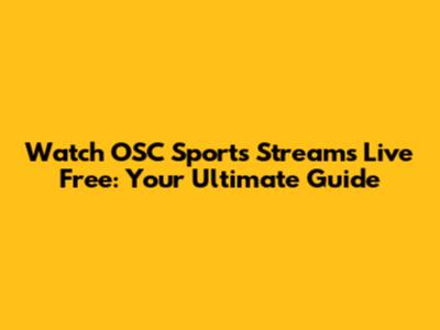 Watch OSC Sports Streams Live Free: Your Ultimate Guide