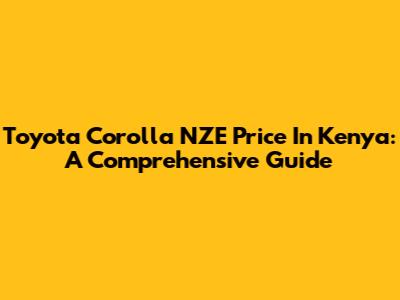 Toyota Corolla NZE Price In Kenya: A Comprehensive Guide