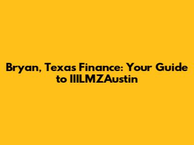 Bryan, Texas Finance: Your Guide To IIILMZAustin