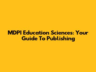 MDPI Education Sciences: Your Guide To Publishing