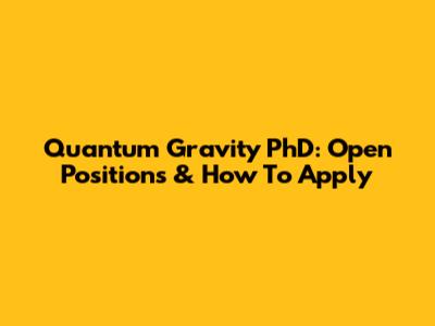 Quantum Gravity PhD: Open Positions & How To Apply