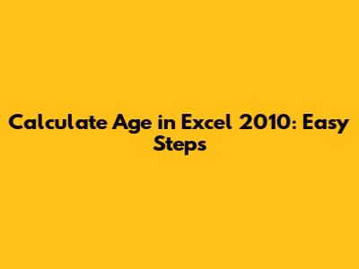 Calculate Age In Excel 2010: Easy Steps