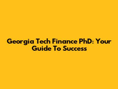 Georgia Tech Finance PhD: Your Guide To Success