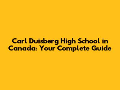 Carl Duisberg High School In Canada: Your Complete Guide