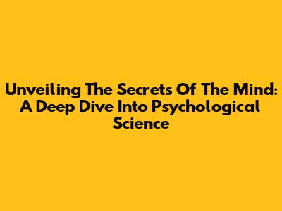 Unveiling The Secrets Of The Mind: A Deep Dive Into Psychological Science