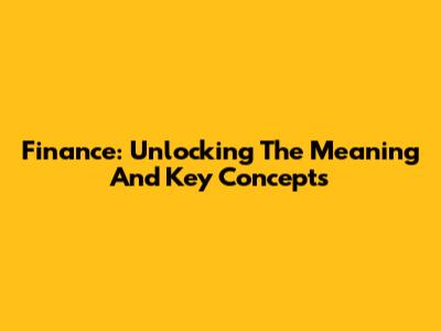 Finance: Unlocking The Meaning And Key Concepts