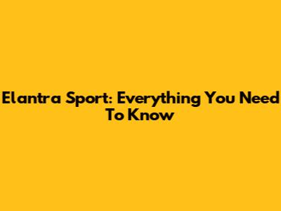 Elantra Sport: Everything You Need To Know