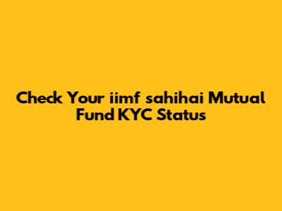 Check Your Iimf Sahihai Mutual Fund KYC Status