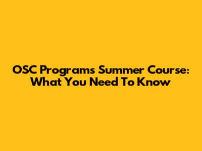 OSC Programs Summer Course: What You Need To Know