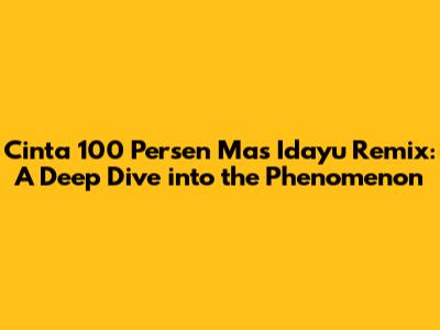 Cinta 100 Persen Mas Idayu Remix: A Deep Dive