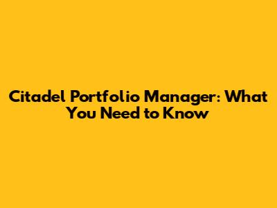 Citadel Portfolio Manager: What You Need To Know