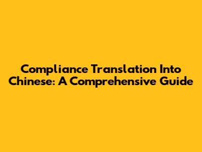 Compliance Translation Into Chinese: A Comprehensive Guide