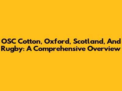 OSC Cotton, Oxford, Scotland, And Rugby: A Comprehensive Overview