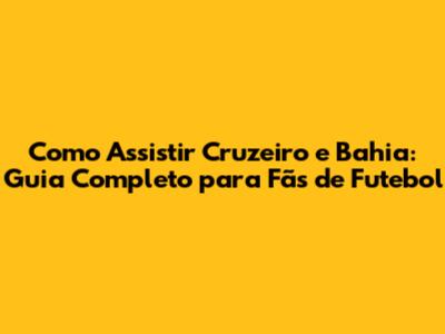 Como Assistir Cruzeiro E Bahia: Guia Completo