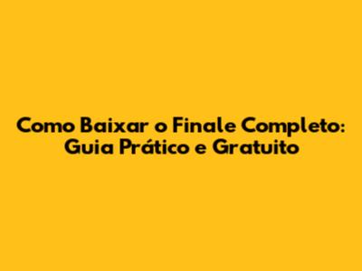 Como Baixar O Finale Completo: Guia Prático E Gratuito