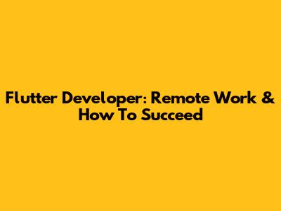Flutter Developer: Remote Work & How To Succeed