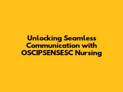 Unlocking Seamless Communication with OSCIPSENSESC Nursing