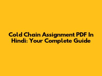 Cold Chain Assignment PDF In Hindi: Your Complete Guide