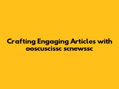 Crafting Engaging Articles With Ooscuscissc Scnewssc
