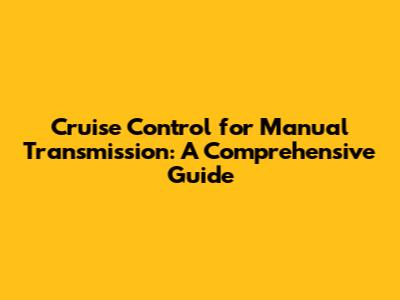 Cruise Control For Manual Transmission: A Comprehensive Guide