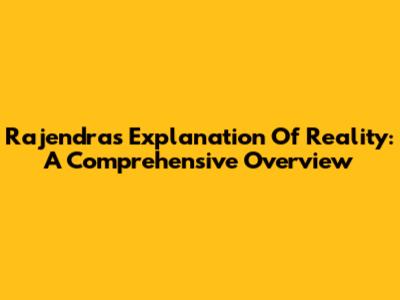 Rajendra's Explanation Of Reality: A Comprehensive Overview