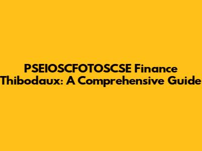 PSEIOSCFOTOSCSE Finance Thibodaux: A Comprehensive Guide