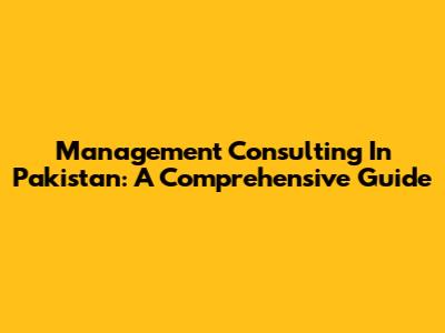 Management Consulting In Pakistan: A Comprehensive Guide