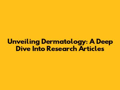 Unveiling Dermatology: A Deep Dive Into Research Articles