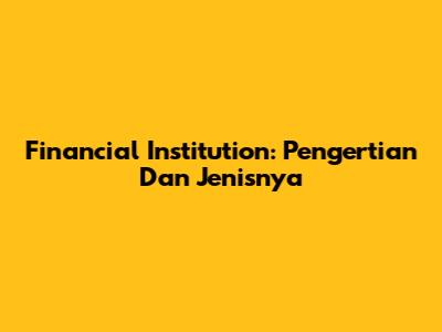 Financial Institution: Pengertian Dan Jenisnya