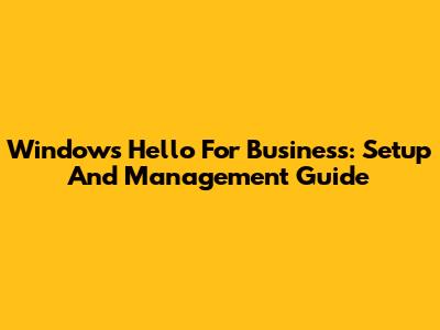 Windows Hello For Business: Setup And Management Guide