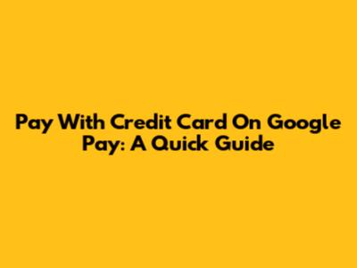 Pay With Credit Card On Google Pay: A Quick Guide