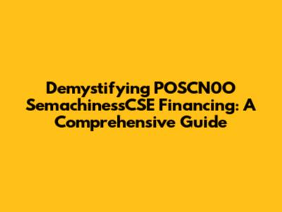 Demystifying POSCN0O SemachinessCSE Financing: A Comprehensive Guide