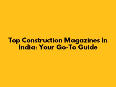 Top Construction Magazines In India: Your Go-To Guide
