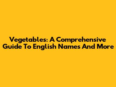 Vegetables: A Comprehensive Guide To English Names And More