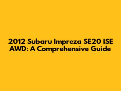 2012 Subaru Impreza SE20 ISE AWD: A Comprehensive Guide