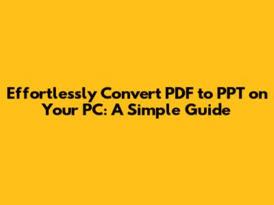 Effortlessly Convert PDF To PPT On Your PC: A Simple Guide